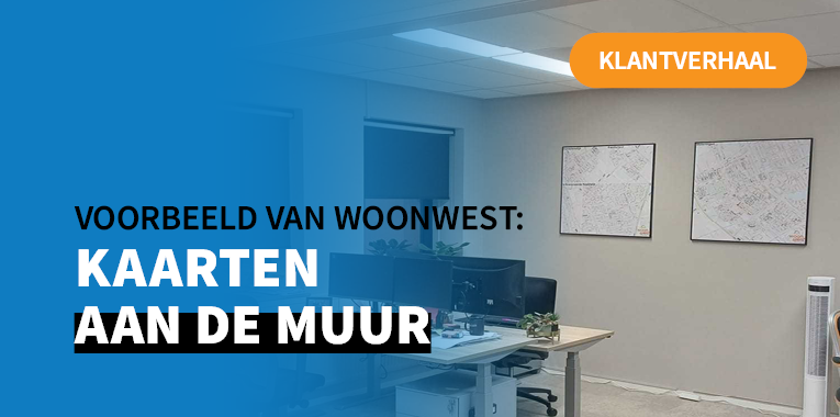 De VastgoedCloud helpt woningcorporaties om hun vastgoed overzichtelijk in beeld te brengen, bijvoorbeeld via interactieve kaarten. Bij woningcorporatie Woonwest ontstond de wens om die visuele inzichten ook fysiek beschikbaar te maken in de vorm van een kaart die op kantoor